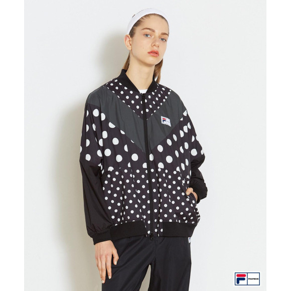 디자인:대담한 스포츠 테이스트의 전환에 2종류의 도트를 조합한 라이트 불존깃과 소매구, 옷자락에 리브가 붙어 뒷면에는 사라토한 메쉬 소재가 붙어 있으므로 붙이는 것이 없고 쾌적하게 착용할 수 있습니다.가슴에 붙은 콜라보 로고의 네임이 시원한 엑센트가 되어 있습니다.