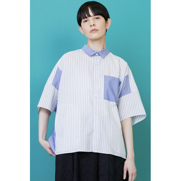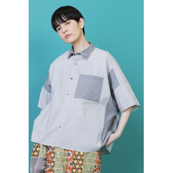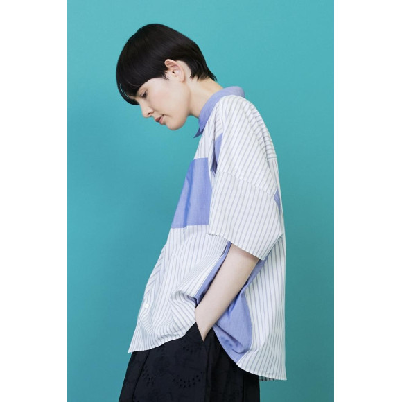 오늘은 와이드 실루엣으로 스트라이프와 무지조의 천을 조합한 셔츠, 와이디 셔츠를 소개합니다.