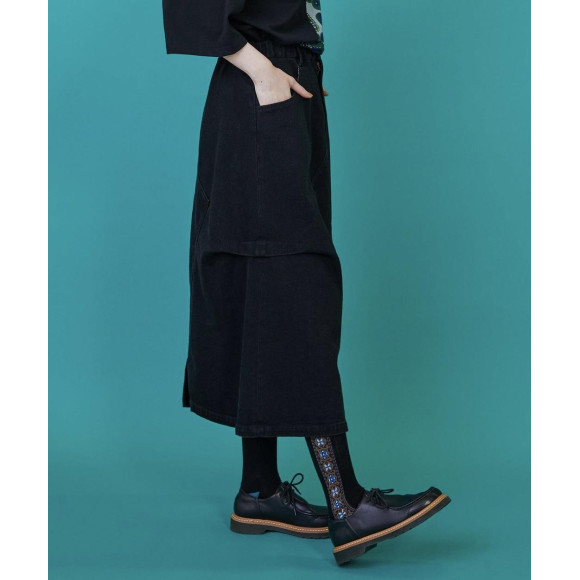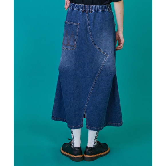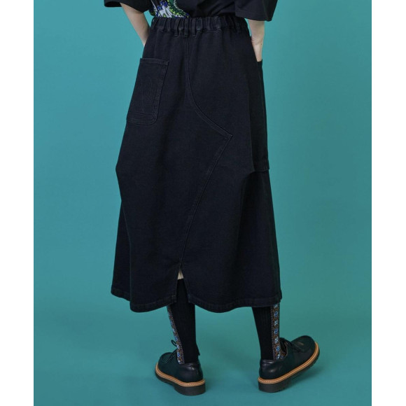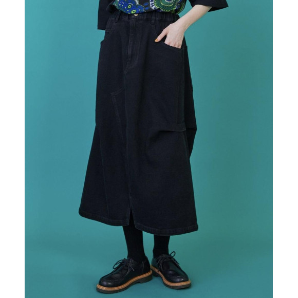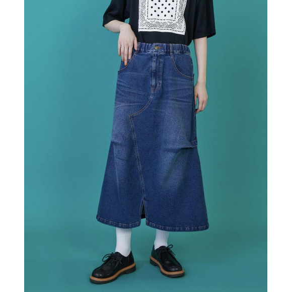【디자인】데님 팬츠를 해체해서 리메이크한 것 같은 독특한 전환이 눈길을 끄는 데님 스커트적당한 여유가면서도 깔끔한 나로 실루엣에 옆으로 태크를 취해 엑센트를 만들고 있습니다.허리도 고무와 히모로 이지적인 곳도 기쁜 포인트가 되고 있습니다.