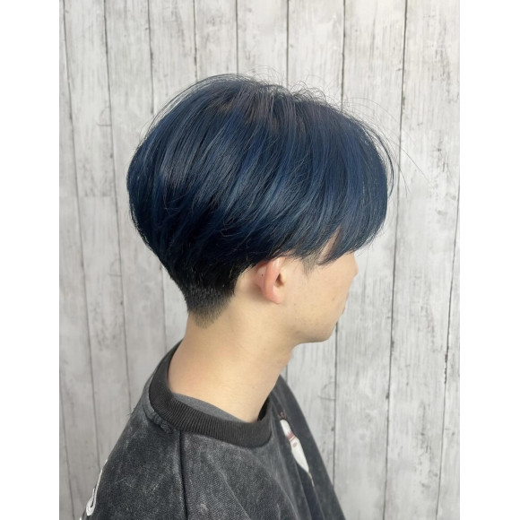 【센터 파트】업뱅【투 블록】【쇼트 매쉬】【블루 컬러】 트렌드를 담은 미 실루엣 맨즈 쇼트 스타일!