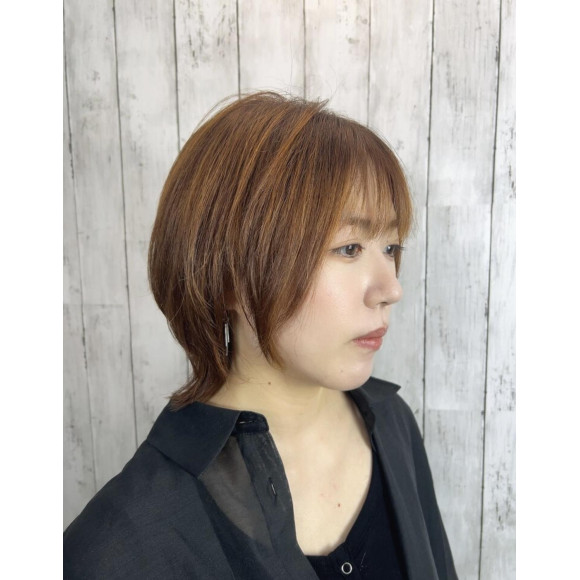 얼굴 주위의 레이어로 윤곽을 깨끗하게! 옷깃발의 허드감으로 개성과 멋진 분위기를! 명도가 다른 오렌지계【하이라이트 컬러】를 조합해, 부드러운 묶음을 즐길 수 있는 오샤레 스타일★